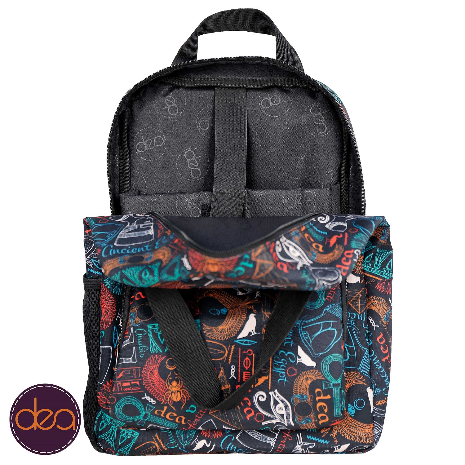 للمتعلقات الشخصية + عدة جيوب داخلية منظمة للأقلام + جيب جانبي لزجاجة المياه،