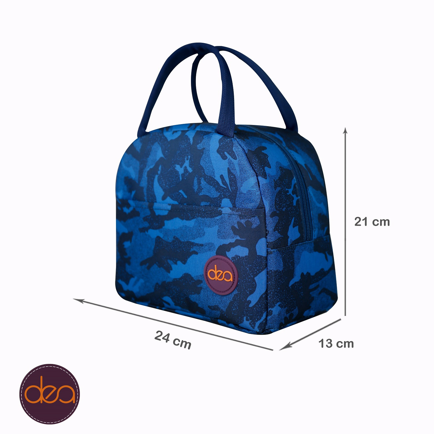 Lunch Bag with one main compartment and a front pocket Dimensions: L 21 * W 24 * D 13 cm. Material: High Quality Polyester. Available in multiple Prints. - Add a review